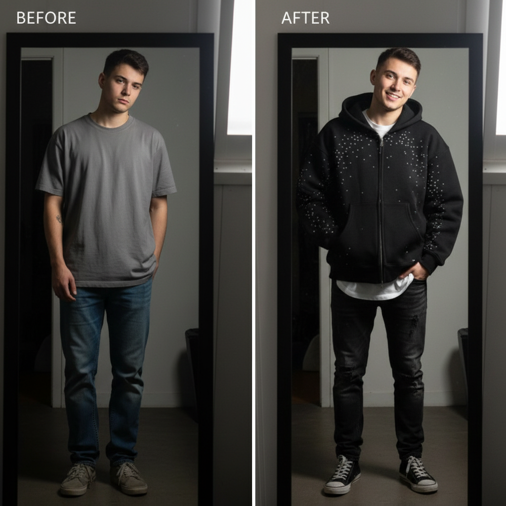 Der Vintage-Hoodie, der überall für Aufsehen sorgt und Gespräche anregt.